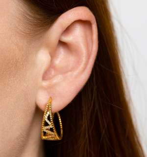 Gold rope framed hoop earrings are playfully connected by a wave of pave lab-grown diamonds. A fun take on the hoop shape, this earring allows you to style diamonds that can be worn everyday, out on the town, or to a formal function. Wherever youre heading, the Onda Hoops are the perfect versatile earring. Composition - Lab-Grown Diamonds - 0.7 carats - 18K Gold Vermeil: Our 925 Recycled Sterling Silver is coated in the highest quality thick gold vermeil. This guarantees top quality and long lasting product that you can wear in all conditions. - Hypoallergenic, water resistant. Style with The Lala Top and St. Tropez Skirt, or jeans and a tee.