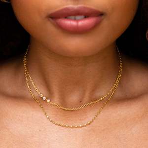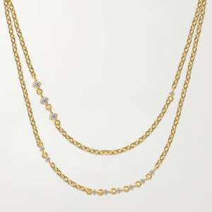 This double layered chain choker features a total of 12 princess cut diamonds ranging in sizes, but all just as beautiful as the next. The Palma Choker is perfect for layering without the hassle, this choker ads depth and style to your neck party in one take. Composition: - 18K Gold Vermeil: Our 925 Recycled Sterling Silver is coated in the highest quality thick gold vermeil. This guarantees top quality and long lasting product that you can wear in all conditions. - Hypoallergenic, water resistant. - Lab-Grown Diamonds - 0.702 carats - 15" in length Style with: Salamanca Earrings, Granada Earrings, Cascada Earrings