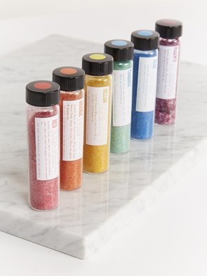 Moon Nectar is hand crafted with focused intentions for healing and actualizing optimal physical and spiritual well-being. Each product contains all natural ingredients from the earth with inspiration from ancient healing practices. - Includes 10 baths made from natural fruit and vegetable pigments, mica pigments and epsom salt - Contains a booklet of info with each color meaning and a meditation, notes on use - Pendulum and pendulum wheel to help you channel the color you need for healing - RED: Beetroot, Elderberry, Natural mica pigment, epsom salt, Rose E.O. - ORANGE: Orange peel, Turmeric, Annato seed, Beetroot, Epsom salt, Tangerine E.O. - YELLOW: Turmeric, Orange peel, Natural mica pigment, Epsom salt, Ylang yang E.O. - GREEN: Spirulina, Natural mica pigment, Epsom salt, Cypress E.O. - BLUE: Blue spirulina, Natural mica pigment, Epsom salt, Frankincense E.O. - INDIGO: Hibiscus, Blue spirulina, Natural mica pigment, Epsom salt, Juniper berry E.O. - PURPLE: Butterfly pea flower, Natural mica pigment, Epsom salt, Lavender E.O. - MAGENTA: Elderberry, Blue spirulina, Cherry powder, Natural mica pigment, Epsom salt, Geranium E.O. - PINK: Cherry powder, Strawberry, Beetroot, Epsom salt, grapefruit E.O. - TURQUOISE: Kaolin clay, Spirulina, Epsom salt, Natural mica pigment, Sage E.O. - Apothecary is ?final sale? **Although these are natural pigments color deposits may occur in tub. The color likes to attach to oils, so if your tub is dirty this may be a result**