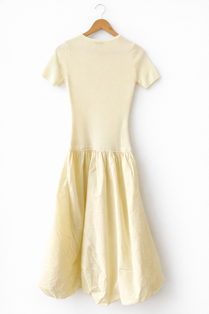 Short Sleeve Crewneck Bubble Midi Dress - Butter Yellow
