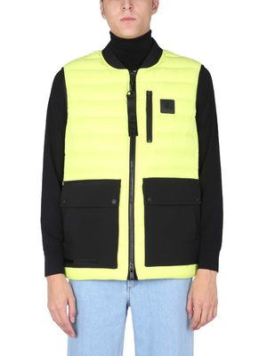Crew neck vest with front double cup construction. Shell: 96% Polyester, 4% Spandex Combo: 100% Nylon Lining: 100% Nylon Fill: 90% Duck Down, 10% Duck Feathers.