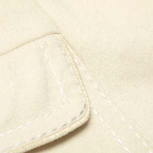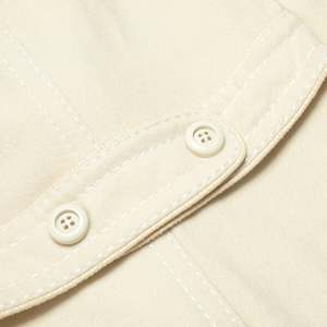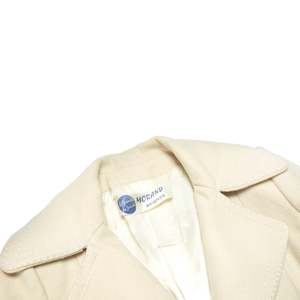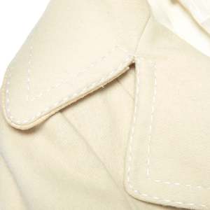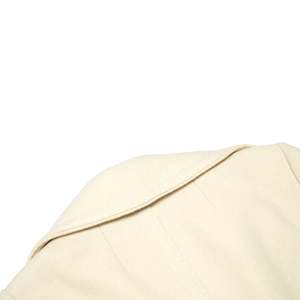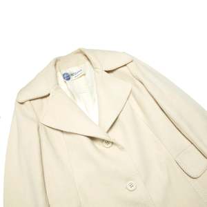 The Lodralen-treated wool coat fuses Avignon tailoring with Parisian design logicarchitectural minimalism, technical fabric, and sculptural 1960s claritys. The coat in question, a womens single-breasted city overcoat from Morand Avignon in collaboration with Uzs-Coats Paris, stands as a paragon of mid-century French outerwearmeticulously constructed and conceptually situated at the intersection of regional tailoring expertise and metropolitan design innovation. Its provenance reveals a layered origin: Morand, a provincial outfitter rooted in Avignon, lends the garment its artisanal base, while Uzs-Coats Paris contributes the refined vocabulary of Parisian tailoring. This partnership, underscored by the use of Lodralena proprietary waterproof woolembeds the coat within a post-war textile innovation wave that championed the integration of performance fabrics into structured womenswear. Lodralens impermabilise treatment, likely a resin or paraffin-based chemical finish, reflects mid-century advancements in French textile engineering, enabling wool to repel water without forfeiting breathability or softness, and positioning the garment within a legacy of elegant functionality. The coat embodies a restrained but assertive silhouette rooted in the lineage of Diors New Look, yet tempered by a modernist reductionism. Constructed in a dense ivory wool meltonpossibly a double-faced or brushed variant akin to loden or castor cloththe textile has been heavily fulled, sheared, and brushed to produce a matte, non-directional surface with a soft nap and a substantial GSM estimated between 380420 g/m. The weave base is likely a plain or twill structure, rendered invisible through aggressive finishing processes. The resulting cloth offers a firm hand, stable drape, and thermal protection ideal for urban winter wear. Technically and materially, it aligns with heritage wools such as British melton, Austrian loden, and French castor clothtextiles historically used for military, alpine, or couture outerwearwhile aesthetically it reflects the minimalist claritys of Parisian tailoring traditions. Comparable mills such as Leichtfried (Austria), Tessilbiella and Pontonni di Loro Piana (Italy), and Stradom (France) have historically produced similar high-performance coatings for couture and high-end RTW applications, reinforcing the textiles pedigree. Pattern engineering reveals a multi-panel, semi-fitted block, built upon a princess-seamed bodice both front and back, subtly nipped at the waist and flaring to a moderate A-line hem. The set-in two-piece sleeves are shaped with eased caps and gently sloped shoulders, likely devoid of internal padding to maintain a natural drape. Vertical shaping is achieved through bust darts and rear contour seams, while the center-back seam enhances vertical structure and anchors a martingale belt secured with functional buttons. This belt, flat in execution and topstitched on all edges, serves more as an architectural accent than a cinching mechanism, stabilizing the silhouette without distorting the garments flow. Construction methodology adheres to atelier-standard tailoring practices. The garment is fully lined using an ivory satin, bagged by hand along the facings and hem with no visible topstitching on the interior. External seams are edge-topstitched in crisp white thread at a consistent 67 mm spacing, offering both reinforcement and visual articulation along the collar, lapels, pocket flaps, belt, and front placket. All major seams appear pressed open with clean internal layering; corners, particularly at the lapels and flaps, are sharply turned, indicating precise grading and trimming of seam allowances, likely held to 11.5 cm throughout. Buttonholes are keyhole-style, possibly hand-finished or executed via vintage machineryone slight irregularity betrays the small-batch origin of the piece. The notched collar is generously scaled and beautifully proportioned, with rounded corners and symmetrical lapels, suggesting a bias-cut upper collar for soft roll and structural integrity. The undercollar is likely a melton or felt interlining, pad-stitched to create a sculptural roll. The front placket is stabilized with interfacingpossibly horsehair canvas or weft-insertion fusibleproviding gentle stiffness without compromising the coats fluidity. Buttons are anchored with thread shanks to prevent fabric distortion, a detail that further confirms a tailored, non-industrial production origin. Pocket construction includes flapped patch pockets with boxed underlayers, precisely aligned along the princess seams, and reinforced with twin-needle topstitching. The hem is hand-blind stitched from the lining side and internally stabilized, likely with bias tape or fusible support, yielding a flat, ripple-free finish. Stylistically, the coat operates within a vocabulary of mid-century minimalism filtered through a distinctly Parisian lens. The choice of an ivory monochrome palette, absence of ornamentation, and emphatic use of contrast topstitching lend the garment a graphic claritys reminiscent of sportswear tailoring. Yet the proportionsparticularly the wide notched lapels and flared hemretain a sculptural grace that aligns the coat with couture silhouettes of the early 1960s. The martingale belt references 1940s military uniforms, recontextualized here as a post-war gesture of softened authority. The entire construction communicates psychological composure and visibility; this is not merely a protective layer, but a visual assertion of presenceits contrast stitching signaling both craftsmanship and intention. The historical context reinforces its distinct placement within early 1960s France, a moment when ready-to-wear was gaining legitimacy, and outerwear innovation was driven by a fusion of regional production and Parisian design leadership. The garment likely retailed in a provincial boutique catering to bourgeois clientele who valued technical excellence and urban polish. It bridges 