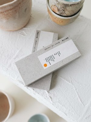 Washi Paper Incense Strips combine friendly missives with rich aromas. Each box contains 30 strips of incense steeped in a blend of natural aromas, along with a metal clip to hold the incense as it burns. Made in Japan.