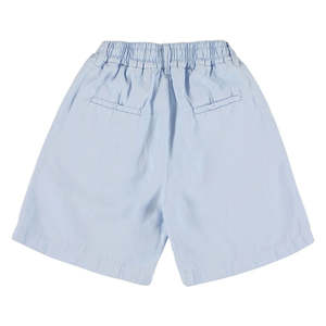 Morley is a Belgian children's brand with an avant-garde style. Exquisite details and luxury fabrics meet stone-washed looks and sports influences to create timeless and playful collectsions. - Wide shorts - Side seam pockets - Welt pockets on the back - Button and fly closure at the front - Elasticized waist 59% Tencel, 25% Linen, 16% Cotton Gentle machine wash at 30C. Tumble dry low.