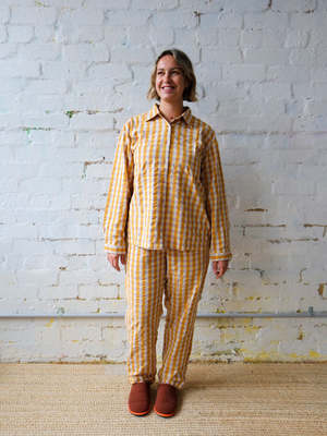 Sleep well in the Sundae Seersucker Pyjama Set. Designed with comfort in mind, this set features a short-sleeved boxy shirt and matching pants with an elasticated, drawstring waistband. A fun option for bed, beach or brunch. DETAILS - Available in sizes XS/S, S/M, M/L and L/XL - Made from 100% woven seersucker cotton - Machine washable - Original Mosey Me design SIZING - Size XS/S is equivalent to AU size 8 - Size S/M is equivalent to AU size 10 - Size M/L is equivalent to AU size 12 - Size L/XL is equivalent to AU size 14 - Model is a size AU 12 and wears M/L