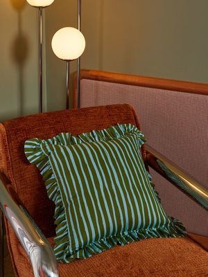 Preorder now for shipping from week commencing 23rd March 2026. Add some colour and texture to your home with the Strokes Ruffle Cushion in guacamole and crystal blue. This 45cm square cushion is made from 100% cotton sateen and features a 5.5cm ruffled flange. Equally at home on the couch or bed, pair with any of our bedding styles to create a sumptuous, layered bedroom look, or combine with our range of cushions and throws for a cosy lounge room vibe. Thoughtfully designed in Melbourne, beautifully made in India. DETAILS - 45cm x 45cm with 5.5cm ruffle flange - 100% cotton sateen shell - Can be purchased as a cover only, or with a 100% vegan or feather insert - Original Mosey Me design
