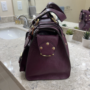 + Buckle Styled Shoulder and tote Bag + One Of Mulberry's Most Iconic Silhouette! + Now Hard to find Roxanne Combines Rock & Roll Style With Playful Detailing to Create A Bag that One of a Kind. + Crafted from High Quality Robust Purple Full Grain Leather, this substantial & Durable Satchel is a True Piece of Craftsmanship. + Two Functional pockets on Front, Numerous Buckles & Studs Details. + Unlined Roomy Interior. + In Excellent Condition With No Flaws. Almost like NEW + Provides Genuine Dust Bag. + Made in Italy + RARE COLOR : PURPLE + Condition : Rarely used / Almost like NEW