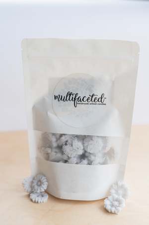 Transform your home into a sanctuary of strength and positivity with the Multifaceted Artisan Candles Sunflower Candle. This uniquely designed candle features a beautifully crafted sunflower top, inviting you to embrace longevity and your full potential. The fragrance unfolds in layers: bright citrus and warm coconut awaken the senses, followed by a comforting blend of amber, lavender, and delicate florals, all grounded by rich, earthy notes of Egyptian musk and white tea. PRODUCT FEATURES - Unique sunflower top design adds a beautiful, artistic touch to any room. - Captivating scent profile transitions from bright citrus and coconut to warm florals and musk for a rich, evolving fragrance experience. - Crafted from a natural coconut and soy wax blend for a clean, long-lasting burn. - Made with a natural, lead- and zinc-free wick for a safer, cleaner burn. - Arrives in a recyclable candle box, making it a thoughtful and responsible gift. - Ethically sourced by women of color. PRODUCT SPECS - Available in 8 oz and 2.5 oz sizes. - Made from a natural coconut and soy wax blend. - Vessels are made from premium glass (30% recycled glass). - Scented with fragrance oils free from harmful chemicals. - Ships in recycled cardboard.