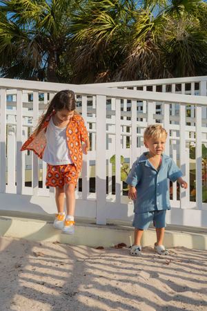 Designed for endless play and exploration, Setzers feature bold patterns and comfy, durable fabrics. Mix and match effortlessly for versatile, chic outfits that simplify dressing and keep kids ready for any adventure. Ideal for daily wear and special moments, Setzers are the go-to choice for confident, comfortable kids. Our pieces run slightly oversized to grow with your child. If you're between sizes, we recommend sizing up. Example: 2.5 years old size 34 4.5 years old size 56 All Mumzers pieces are made to lastdesigned for today, and tomorrows adventures too. 100% cotton.
