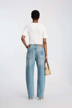 The Bodhi Wide-Leg Jean by Munthe is denim designed to be as bold as you are. This style features a relaxed, wide-leg silhouette that flows with every step, combining retro-inspired cool with contemporary edge. The flattering cut elongates the legs while offering ease and movement, making it a statement piece that still feels effortless. Features: - Relaxed, wide-leg fit that moves with you - Premium denim construction for a balance of comfort and structure - Versatile styling: pair with a crop top and boots or a blazer and heels - Timeless silhouette that works across seasons Slip into the Bodhi Wide-Leg Jean for bold, confident, and unapologetically chic style.
