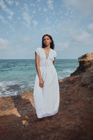 The Gretta Dress by Mus & Bombon is a gauzy cotton dress made in Spain.