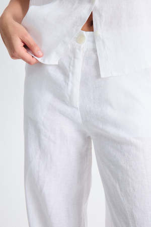 Springs favorite pant: a linen trouser with pockets, made in Spain. Wash in cold and hang to dry.
