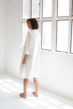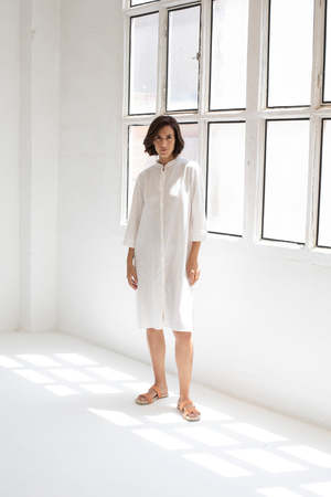 Made in Spain 30 km from Mus&Bombon The Suhai dress is a shirtdress with mao collar and special fabric, with front button fastening and side slits for greater comfort. The total measurement of the garment in size S is 105cm. Composition: 100% cotton