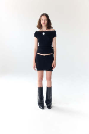 The Maru Ribbed-Knit Mini Skirt in a wool-blend fleece makes this style extra cozy. With a distinct ribbed texture and boasts a slim fit. - Banded V-shape at waistband - Rib construction - Wool-blend fleece - Worn with Maru off-the-shoulder Top Fit Guide The fit of this piece is true to size. Eva is wearing a size Extra Small. Eva Measurements: Height: 175cm | Bust: 86cms | Waist: 67cms | Hips: 97cms
