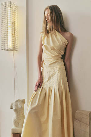 The Ora Top is a season-to-season staple featuring a one-shoulder neckline and a softly gathered underarm panel. It is finished with subtle pleats and a button placket at the back. Details - One-shoulder silhouette - Asymmetric design - Gathered underarm panel - Pleated shoulder detail - Self-covered button placket at back - 100% Cotton Fit Guide Diana is wearing a size XS (AUS 6). Diana's measurements: Height: 181 cm | Bust: 83 cm | Waist: 60 cm | Hips: 90 cm