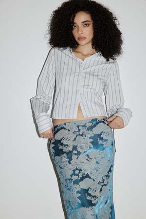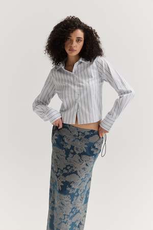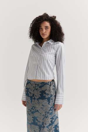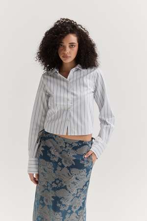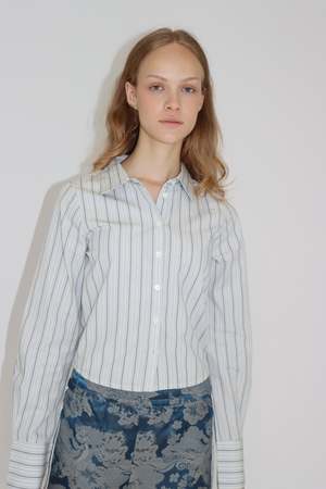 COLOUR | Stripe INTRO | This striped button-up shirt combines classic tailoring with a modern cropped silhouette. Long sleeves with buttoned cuffs. Similar fit to the Sika Shirt C.12 This item is a pre-order purchase Pre-order This item is available for pre-order and will be shipped in the third week of November. If youd like your other items to be sent separately, please contact us at hello@musethelabel.com Details Fabrication: 100% Cotton Classic point collar Button-up front closure Cropped length Vertical stripes Fit Guide The fit of this piece is true to size. Beatrys is wearing a size S Beatrys' Measurements: Height: 173cm | Bust: 85cms | Waist: 68cms | Hips: 98cms Size chart/measurements below