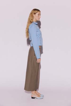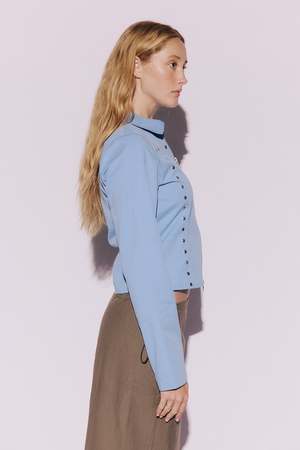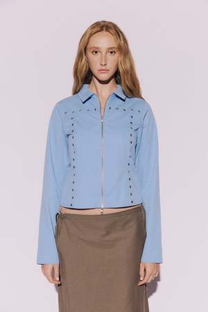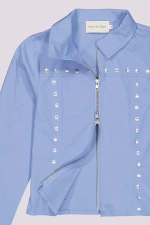 The Sika Stud Shirt is cut from cotton with a structured silhouette featuring tonal metal stud detailing and a double-ended zip. Details - Fabrication: 100% Cotton - Tonal metal stud detailing - Zip front fastening - Classic collar - Long sleeves with button cuffs - Slim, tailored fit Fit Guide Summer is wearing a size M (AUS 10) Summer's Measurements: Height: 179cm | Bust: 90cm | Waist: 73cm | Hips: 98cm