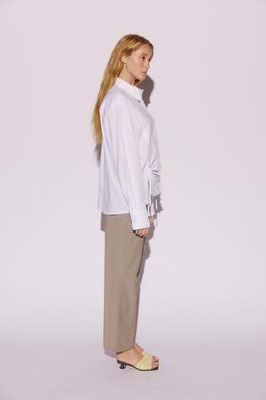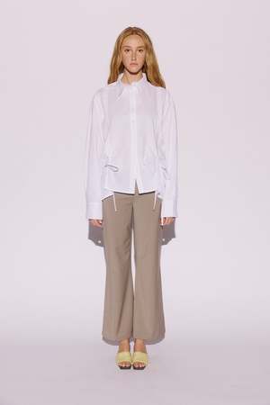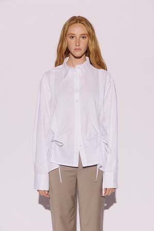 The Zaya Shirt in crisp cotton features a relaxed fit with adjustable drawcords at the waist, allowing the silhouette to be softly cinched or left loose. Details: - Fabrication: 100% Cotton - Classic collar and button-through front - Adjustable drawcords at hem that sit at waist - Slits at front - Oversized cuffs with button fastening - Relaxed fit Fit Guide: Summer is wearing a size M (AUS 10) Summer's Measurements: Height: 179cm | Bust: 90cm | Waist: 73cm | Hips: 98cm