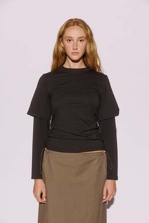 The Tavi Layered Tee combines the look of a short sleeve tee over a long sleeve top, all in one easy piece. Made from soft, breathable 100% cotton jersey, with subtle side ruching and a front panel for a gently shaped silhouette. - Built-in layered design - Crew neckline - Side ruching detail - Short sleeve over long sleeve construction - Regular fit with gentle shaping at side panel Model Eva is wearing a size S (AUS 8) for a roomier fit. Model Summer is wearing a size M (AUS 10).