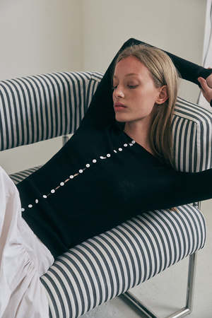 A quietly elevated staple, the Lis Cardigan is a refined layering piece with subtle statement. Knitted in fine merino, it features a neat, close-to-body silhouette with delicate contrast buttons running through the centre front and an extra high rib at waist and cuffs. Details: - 100% RWS Merino Wool - Contrast shell buttons - Fine high rib at hem and cuffs - Stripe detail down sleeves - Crew neckline Fit Guide: This cardigan is a slim fit. Eva is wearing a size XS (AUS 6). Summer is wearing a size M (AUS 10). Eva's Measurements: Height: 179cm | Bust: 80cm | Waist: 60cm | Hips: 88cm Summer's Measurements: Height: 179cm | Bust: 90cm | Waist: 73cm | Hips: 98cm