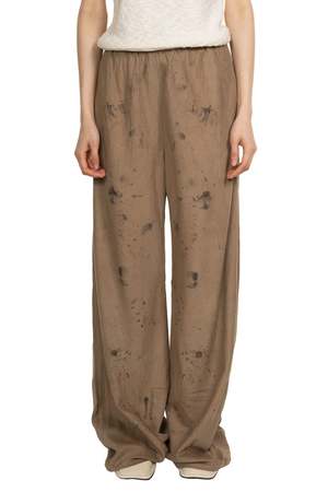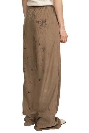 Yu Qun believes that everyone's character is multi-faceted and expressing spiritual independence. Fine hand-stitched threads, old mottled colours and patterns, and unconventional cuts are what Mute Dance has been exploring. The leaves and stems of fresh plants and berries, dried medicinal materials, old metals and so on are combined with the ancient and traditional dyeing technology to dye fabrics and paper as seen with the Trousers Celadon. Mute Dance Trousers Celadon. Elastic waist. Two side pockets. Signature dyed finish. Soft fabric. Colour: Celadon. Composition: Wool.