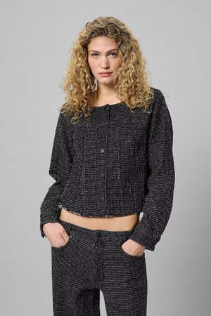Tweed jacket with a textured look, straight shape and short cut. Round neckline, visible seams, button placket at the front. Fit: Regular fit Length: Ankle length Sleeves: Long sleeve Fabric Composition: 99% Cotton, 1% Elastane