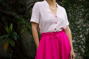 A classic circle skirt with our signature drawstring elastic waist- - chic and comfortable. Side seam pockets. 100% deadstock cotton. Briana is wearing the S. Styled with Myrtle Laurence blouse. - X-Small - Waist: 25-28" - Small - Waist: 27-30" - Medium - Waist: 29-32" - Large - Waist: 31-34" - X-Large - Waist: 33-36" MYRTLE is our in-house collectsion, designed by Whitney Bickers and produced locally in Los Angeles, California, of remnant fabric to reduce waste.
