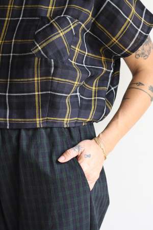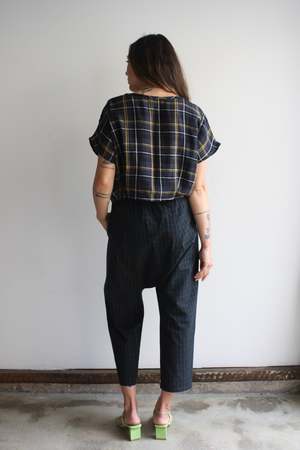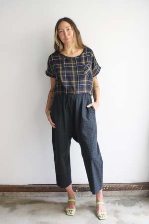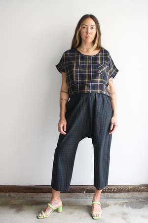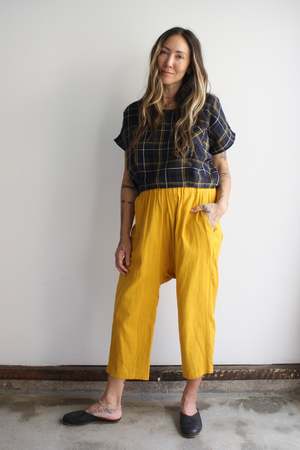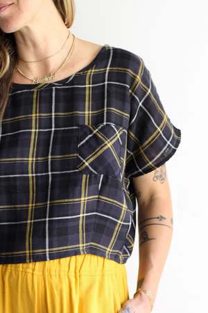 Wide cropped tee in the softest double cotton gauze. Chest pocket. Also available in Marigold. 100% double cotton gauze Elie is 5'3" wearing the S with Myrtle x HIGTE Michelle Pants. MYRTLE is our in-house collectsion, designer by Whitney Bickers and produced locally in Los Angeles, California, of remnant fabric to reduce waste.