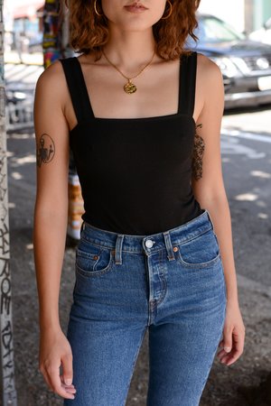 Live in this fitted wide rib tank bodysuit with thong back and snap closure by nPhilanthropy. Hand sewn metal plaque on wearers left hem. - 100% Cotton - Machine wash cold like colors, lay flat to dry - Made in LA - Designer: nPhilanthropy