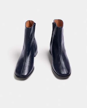 BIELDO is a heeled ankle boot with an inside zipper, perfect for everyday wear. - Metallic sheepskin leather upper. - Cowhide leather lining. - Heel height is 3 cm, measured from the central section, not the back. - Wide heel for enhanced back comfort. - Made in Spain.