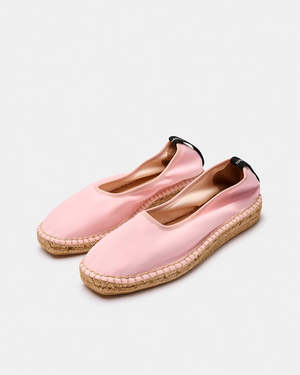Allium is a closed-toe pump with elastic binding. Lycra upper with cotton lining. The insole is cushioned with foam and lined with natural cowhide leather for better breathability. The curved sole comprises a single jute braid, a small wedge for increased comfort, and a non-slip rubber outsole. - Color: Pink - Total height of 3 cm