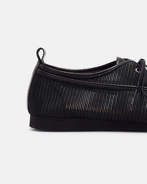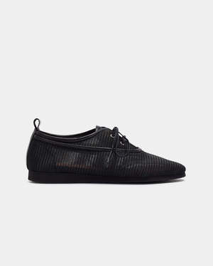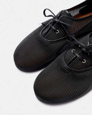 Carmen is an oxford-style shoe. The upper material is synthetic mesh leather with flat cotton laces. Unlined construction. The insole is padded and lined with natural cowhide leather. The sole is virgin rubber with a wedge and a round toe. Sole height 2 cm. Made in Spain. SKU: 26VCAR25NEN. Shoe type: This product fits true to size. Pre-order item.