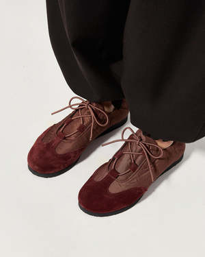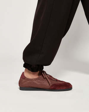 The Raluca sneaker by Naguisa features a combination of materials. The upper is made of suede leather and synthetic technical fabric. It has a lace-up closure, textile lining, and a cushioned insole lined with natural cowhide leather. The sole is made of virgin rubber with a 2 cm wedge. Rounded toe. Made in Spain.