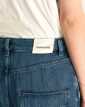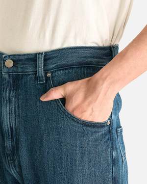 These jeans are crafted from a mid-weight cotton and linen blend that offers a fluid drape. They feature a zip fly and button closure, 5-pocket styling, and a rinse wash that creates a soft hand feel. Product SKU: NW25-511-N1350WA-5300 Model Measurements - Relaxed fit, high-waisted - Model is 6'2" with a 30" waist and wears size medium Product Features - Belt loops - Zip fly and button closure - 5-pocket styling - Soft hand feel - Pliable denim/linen blend - Embroidered logo2 patch on back waist Product Composition - 56% cotton, 44% linen - Imported