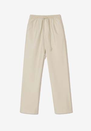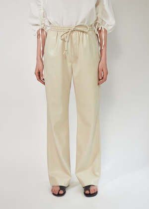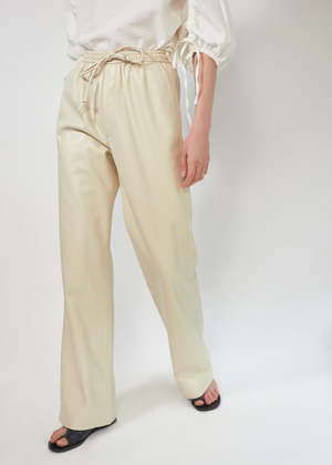 Nanushkas OKOBOR alternative leather in chalk lend the Calie track pants a luxurious quality. They're finished simply, with a relaxed fit, drawstring waist and slip pockets for effortless wear. - Body: 60% Polyurethane, 40% Recycled Polyester; Lining: 56% Acetate 44% Viscose - Fabrication: Eco Vegan Leather - Relaxed Fit - Drawstring Waist - Slip Pockets - Sustainability: OKOBOR by Nanushka: An alternative to leather free from animal skin and the use of animal derivatives, Nanushkas signature alt-leather is now made with recycled polyester and polyurethane. - Dry clean only - Made in Hungary Fits true to size.