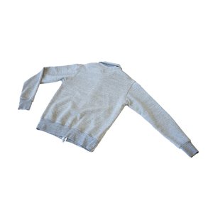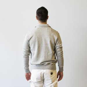This full zip sweat shirt from National Athletic Goods is a unique layering option. Features spread collar, talon zipper with leather pull and two patch pockets at the waist. - 100% Cotton - Made in Canada - Model is 5'11"/170 lbs. and wears size Medium