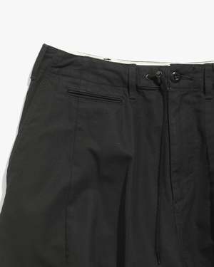 The popular H.D. pants feature a unique silhouette with a fuller front thanks to darts at the waist and hem. The relaxed, wide silhouette provides a comfortable, open fit. While they come in a variety of designs, the basic design is based on simple chino trousers. 100% cotton Made in Japan.