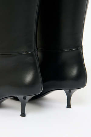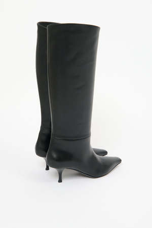 According to NEOUS, a harmonious synergy between shape and material, often in the form of striking, sculptural silhouettes, is central to the brands design philosophy. The label's team of talented Italian artisans uses traditional handwork processes to create refined, dexterous shapes like the elongated square-toed Rami Turbo knee boots. Type: Shoes Size 36, 37, 37.5, 38, 38.5, 39, 39.5, 41 Material Upper: 100% Calf Leather Lining: 80% Sheep Leather / 20% Goat Leather Heel: 100% ABS Plastic Sole: 100% Cow Leather Colour Black Size Fit The pair is cut wide for an easy pull-on fit. Details & Care - Stiletto heel - Heel height: 5cm - Handmade in Italy - Presented in a NEOUS box