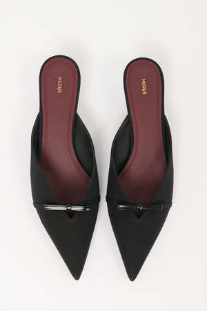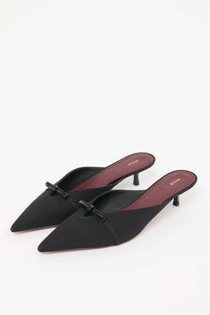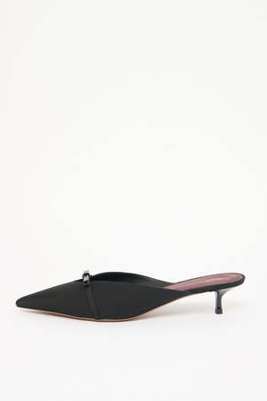 These Mira mules by Neous are made of satin crepe, offering an ideal fusion of modernism and romance. They feature a leather bow accent at the vamp and are set on a comfortable kitten heel. Color: Black Material Upper: 90% PES / 10% Calf Leather Lining: 100% Goat Leather Heel: 100% ABS Plastic Sole: 100% Cow Leather Size 36, 37, 38, 39, 41 Fit Heel height: 4 cm Fits true to size, take your normal size. Details & Care - Black satin - Leather lining - Pointed toe - Heel height: 4 cm - Made in Italy