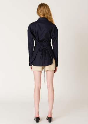 A classic button-down with a twist. The Jules Shirt comes in an oversized fit, featuring shell buttons and a lace-up back for a cinched, corseted look.