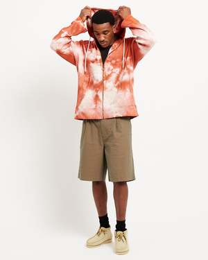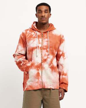 Nicholas Daley Zip Hoodie in Red/Yellow A front zip hoodie with a batik dying process for making each piece unique. Ribbings details are found on the side gussets, hemline, and additionally on the sleeves. - Body: 100% Cotton. Trim: 95% Cotton, 5% Elastane. - Made in Portugal. - Machine wash cold, lay flat to dry. - ND-SS22-ZH4-C-RYGD. Kingston is 6'1 (185cm) weighs 185lbs (84kg) and is wearing a size XL.