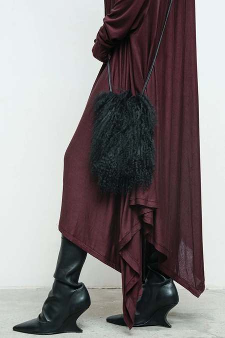 The Blaise Phone Sack by Nicholas K is a small, slouchy bag designed to fit your phone while remaining both stylish and functional. Featuring 100% long hair patchwork shearling, 100% sheep leather, adjustable straps, and a magnet closure. Measurements: Length: 8 1/2" Width: 6"