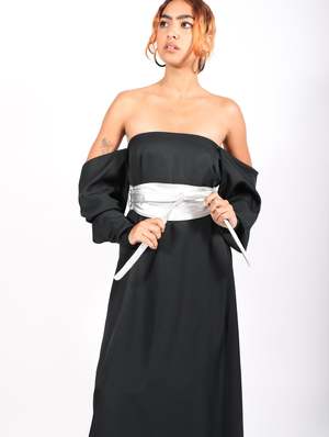 The Tie Belt in Silver by Nicholas K provides versatile styling. Wear as a belt to cinch your waist, or as a headband to keep your hair in place. This leather belt is designed to easily transition between the two looks, so you can express your style in infinite ways. FIT & SIZING One size Length: 81.5" Width: Approx. 4" DETAILS Fabric | 100% Lambskin Leather Color | BLACK Designer | NICHOLAS K CARE Wipe with a damp cloth and air dry. Description tag This leather belt does double duty as a belt and a headband! To wear as a belt, wrap around your waist completely and tie in front. To wear as a headband, wrap around head and use the loops to guide the straps; tie in front, side, or back for different looks! Google product category 166 Arrival date 2023-06-29 Details 2 100% Leather Color Silver Vendor collectsion gid://shopify/Collection/407129850104 Related products display ahead About brand 2 Sibling duo Nicholas and Christopher Kuntz spent their formative years in the Arizona wilderness, developing an affinity for nature and exploration. Nicholas is a well-experienced designer, having studied at the Fashion Institute of Technology and the Polimoda School of Design, along with several stints at various American fashion houses where she developed a progressive and utilitarian taste. Christopher is a fabricator and product designer with an early history of laboratory biotechnics. The two reconnected in 2003 to create a brand tailored for the urban nomad with an appreciation for a sustainable lifestyle. Season collectsion FW23 Fit 2 One size. Care 2 Condition it. Keep it dry. Wipe clean with a damp cloth once a week.