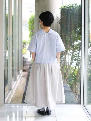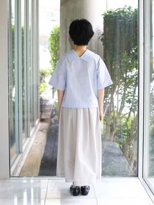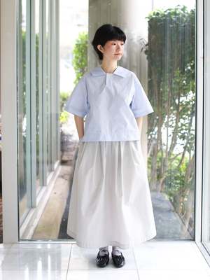 A versatile pullover blouse that can be worn both front and back. The wide and short proportions with short sleeves make it a summer essential that works perfectly on its own, offering endless styling possibilities. Details: - 2-way design: wear it with the button in front or in back - Wide and short silhouette - Short sleeves Size (cm): - 36: Chest 108, Overarm 48.5, Length 45.5, Sleeve Length 24 - 38: Chest 112, Overarm 50, Length 47.5, Sleeve Length 25 69% Cotton, 31% Nylon. Made in Japan.