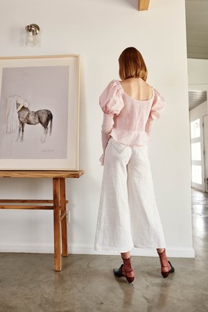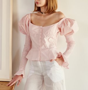 Corset fitted top with contrast smocking on sleeves and back. Covered buttons - 100% cotton - SS19 arriving January 15 2019 Model is 5'10, 176 cm, 33",25",33" wearing size US4/UK8 S Care: Dry clean suggested.