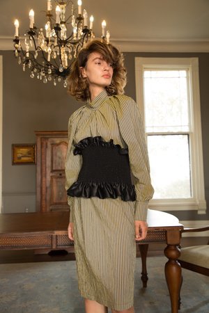 Custom smocking waist corset in black satin - Specially smocked - Stretchable Perfect accessory piece to style over any top or dress - Available in black satin or white embroidery cotton Model is 5'10, 178 cm, 33",24",34" wearing size US4/UK8 XS Luca corset styled with Lola dress Care: Dry clean suggested.