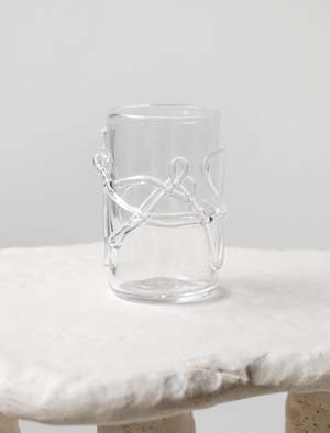 Named for the twisting strands of glass that hang on its edges, the Ivy glass is quiet and cool. Part of a series by Niko June, its twisting branch of freely poured glass reflects the natural fluidity of the material. Each piece is wonderfully unique and brings a small sense of whimsy to the table. Each piece is mouth blown from start to finish at Holmegaard Vrk, a historic glass factory in Denmark - Made in Denmark - 4 x 2.5 - Sold individually - Hand wash with sponge, dishwashing not recommended