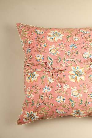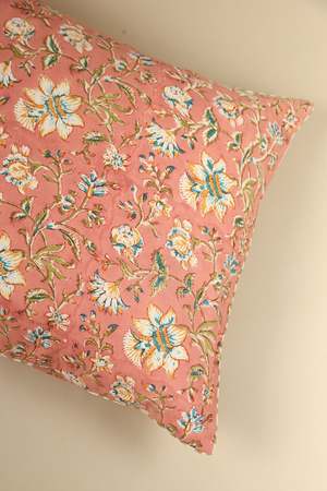 Brighten your living space with the Coral Spring Hand Block Print Pillow from Ninh. Featuring a charming multi-colour floral pattern, this pillow blends traditional craftsmanship with modern design, perfect for adding a happy and bright touch to any room. Fabric: 100% Cotton Dimensions: 20 inch x 20 inch Cover only. Insert not included. Made in India. Each product is meticulously hand-crafted, ensuring every piece is unique. Age-old hand-block printing techniques of Rajasthan are employed by local artisans to create intricate patterns on hand-carved wooden blocks, which are then transferred onto premium cotton fabric using organic dyes and hues. Finally, these fabrics are carefully sewn in-house by the skilled karigars at Ninh, completing a beautiful process of creation.