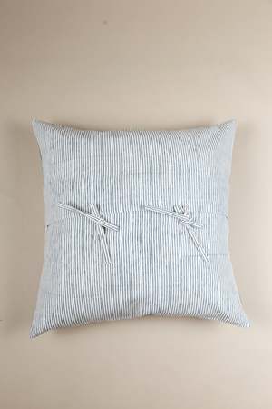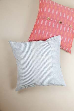 Elevate your living space with the Grey Bliss hand block print pillow. Featuring a subtle white and grey striped pattern, this pillow blends traditional craftsmanship with modern design, perfect for adding an elegant and sophisticated touch to any room. Fabric: 100% cotton Dimensions: 20 inch x 20 inch Cover only. Insert not included. Made in India. Each product is meticulously hand-crafted, ensuring every piece is unique. Age-old hand-block printing techniques of Rajasthan are employed by local artisans to create intricate patterns on hand-carved wooden blocks, which are then transferred onto premium cotton fabric using organic dyes and hues. Finally, these fabrics are carefully sewn in-house by the skilled karigars at Ninh, completing a beautiful process of creation.