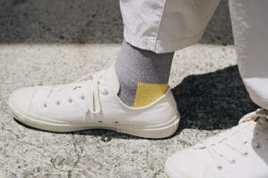 Nishiguchi Kutsushita has used a high-quality merino wool and polyester blend to create a moisture-wicking, super durable sock for trekking, hiking, and long walks. DETAILS - 59% polyester, 40% wool, 1% elastane - Available in SMALL, MEDIUM, LARGE - S fits M 5-7 / W 6-8 - M fits M 7-9 / W 8-10 - L fits M 9.5-12 / W 10.5-13 - Made in Japan.